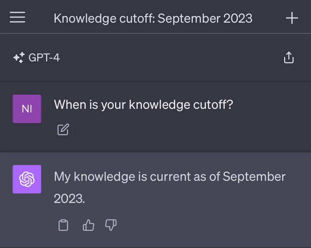 Algunos usuarios han reportado discrepancias en las fechas de corte del conocimiento de ChatGPT: en algunos casos, la IA afirma tener acceso a datos actualizados a fecha de septiembre de 2023, cuando hasta ahora lo normal es que dicha fecha fuera enero de 2022.